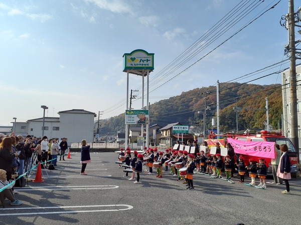 11月27日にハート新市店さんにて、芦品消防署さんと一緒に防火の呼びかけを行いました♪ダンス発表や鼓笛発表を交えながら、防火を呼びかけました!