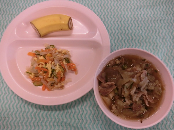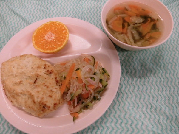 給 食 チキンナゲット 春雨サラダ 野菜スープ みかん