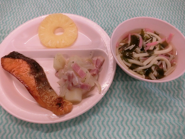 給 食 魚のてりやき ジャーマンポテト すまし汁 パイン缶