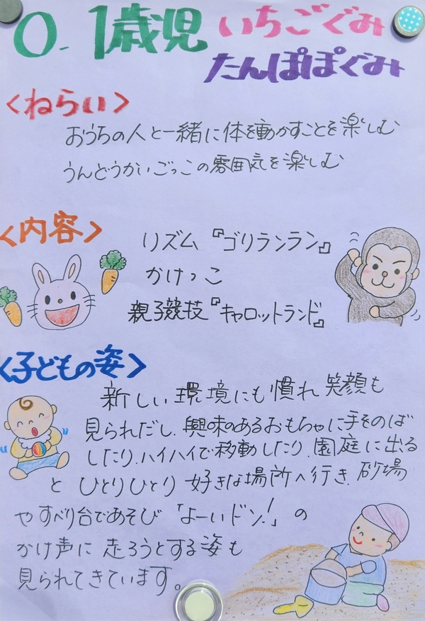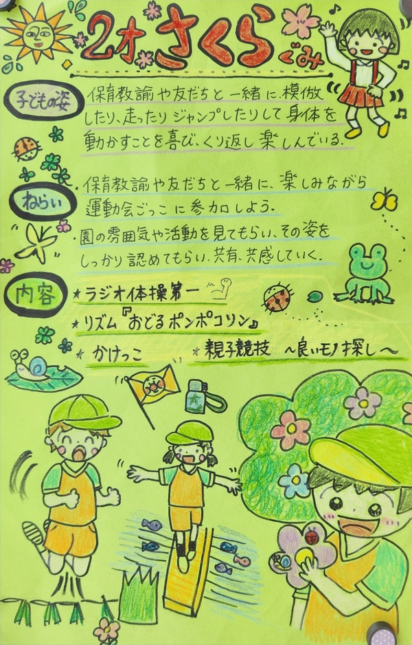 5月9日(木)に運動会ごっこ(0〜2才児)を行いました。毎週火曜の全身運動でしているバランスやジャンプ、毎朝のラジオ体操やリズム♬